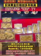 金价再度突破600元大关! 据 证券 时报报道,截至10月20日, 周大福 、 老凤祥 、 周生生 等多家知名金饰品牌的黄金报价蹿上了多年来的新高。 以 周生生 为例,10月20日 周生生 黄金报...