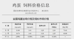 据国家发展和改革委员会价格监测中心网站18日消息,鸡蛋价格存高位下滑可能,蛋鸡养殖盈利或收窄。 国家发展和改革委员会价格监测中心等9月13日发布《2023年9月第2周猪料、鸡料、...