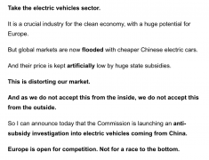 9月13日下午,欧盟委员会官网披露的一则消息,震荡了汽车圈。 该网站披露消息称,欧盟委员会主席冯德莱恩在欧洲议会发表第四次“盟情咨文”时表示,欧盟委员会将启动一项针对从...