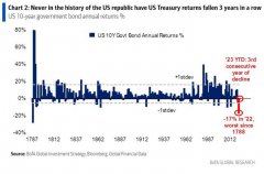 回顾历史,人们常常可以这么说,“美国生于债务”——一部美国通史,就是国债产生、发展的成长历史。而如今,美国10年期国债却似乎极有可能在2023年出现连续第三年的负回报,这...