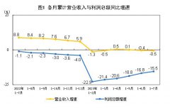 1—7月份,全国规模以上工业企业实现利润总额39439.8亿元,同比下降15.5%,降幅比1—6月份收窄1.3个百分点。 1—7月份,规模以上工业企业中,国有控股企业实现利润总额13805.9亿元,同...