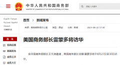 应中国商务部部长王文涛邀请,美国商务部长吉娜·雷蒙多将于8月27日至30日访华。 (文章来源:商务部网站)...