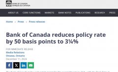当地时间周三,加拿大央行将其关键政策利率从3.75%下调至3.25%,为连续第二个月降息50个基点,符合市场预期。 至此,加拿大央行年内已降息5次,累计降息175个基点,成为主要经济体...