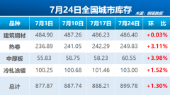 据钢银电商数据显示,截至7月24日,全国钢市总库存量为899.78万吨,较上周环比增加11.57万吨(+1.30%),包含39个城市,共计146个仓库。 本周建筑钢材库存总量为486.40万吨,较上周环比...