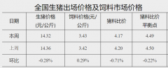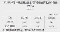 据国家发改委数据,截至6月14日,全国生猪出场价格为14.32元/公斤,较6月7日下跌0.28%;主要批发市场玉米价格为2.8元/公斤,较6月7日持平;猪粮比价为5.11,较6月7日下跌0.39%。 (文章来...