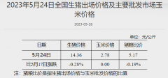 据国家发改委数据,截至5月24日,全国生猪出场价格为14.36元/公斤,较5月17日下跌0.28%;主要批发市场玉米价格为2.78元/公斤,较5月17日持平;猪粮比价为5.17,较5月17日下跌0.19%。 (文...