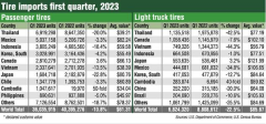 近日,美国商务部和人口调查局公布了美国轮胎进口数据。数据显示,今年一季度,美国乘用车和轻型卡车轮胎的进口量同比分别下降了10.8%和22.5%。这是该市场自2020年年中以来的首次...