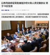据央视新闻,当地时间1月18日凌晨, 以色列总理办公室发表声明,证实以政府已批准加沙停火和人员交换协议,协议将于当地时间1月19日生效。 图片来源:央视新闻 当地时间17日, 以...
