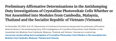 美国出手了。 当地时间11月29日,美国商务部公布其对东南亚四国柬埔寨、马来西亚、泰国和越南晶体光伏 电池 (无论是否组装成组件)反倾销税调查的初步肯定性裁定:四国反倾销税...