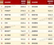11月30日,中指研究院发布2024年1-11月中国房地产企业销售业绩排行榜。榜单显示, 前11个月销售额前三名为 保利发展 、中海地产、 绿城中国 ,分别为3080亿元、2704亿元、2467.2亿元 ;销...