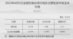 据国家发改委数据,截至4月5日,全国生猪出场价格为14.78元/公斤,比3月29日下跌2.31%;主要批发市场玉米价格为2.86元/公斤,比3月29日下跌1.38%;猪粮比价为5.17,比3月29日下跌0.96%。 (...