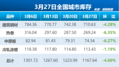 新华财经北京3月27日电钢银电商公布数据显示,截至3月27日的一周,国内39个城市,共计146个仓库的钢铁总库存量为1167.64万吨,环比减少56.35万吨,降幅4.60%。 其中,建筑钢材(包含30个...