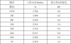 随着季末资金需求逐渐显现,上周国内市场利率呈现稳中有升的态势,其中短期利率上涨幅度更大。截至3月15日,上海银行间同业拆放利率(Shibor)隔夜、1周期、2周期、1月期、3月期、...