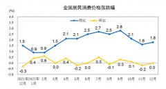 2022年12月份居民消费价格同比上涨1.8% 环比持平 2022年12月份,全国居民消费价格同比上涨1.8%。其中,城市上涨1.8%,农村上涨1.8%;食品价格上涨4.8%,非食品价格上涨1.1%;消费品价格上...