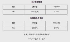 为维护 银行 体系流动性合理充裕,2022年9月15日人民 银行 开展4000亿元中期借贷便利(MLF)操作和20亿元公开市场逆 回购 操作,充分满足了金融机构需求。具体情况如下: (文章来源:央...