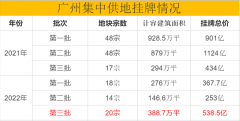 9月9日,广州今年第三批集中供地正式挂牌上线。 广州公共资源交易中心网站显示,本轮共出让20宗地,计容总建面约389万平方米,起拍总价538亿元。 无论从宗地数量、计容总建面,还...