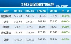 本周城市总库存量为996.24万吨,较上周环比减少3.16万吨(-0.32%)包含39个城市,共计147个仓库。 ①本周建筑钢材库存总量为528.76万吨,较上周环比减少1.88万吨(-0.35%),包含30个城市,共计...
