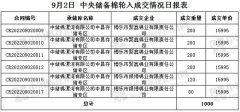 9月2日中央储备棉轮入上市数量 6000 吨,实际成交 1000 吨,成交率 17% 。今日平均成交价为 15995 元/吨。 其中内地库成交 1000 吨,成交承储库 1 家。 今日成交情况如下: (文章来源:中...