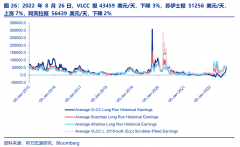 当前油轮运价、新造船价格与 90 年代接近,过去 30 年油轮和造船价格跑输的通胀,即将在本轮周期一次性修复,我们当前预期的周期顶部,或将成为新常态下的周期底部。 VLCC TCE 上周...