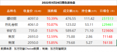 截至8月26日收盘,螺纹钢2210收4097/吨,涨0.39%;热卷2210收4061元/吨,涨0.87%;铁矿石2301收735元/吨,涨3.01%;焦炭2301收2693元/吨,涨2.59%;焦煤2301收2050元/吨,涨3.85%。 螺纹钢2210合约前2...