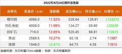 截至8月24日收盘,螺纹钢2210收4086/吨,涨1.52%;热卷2210收4008元/吨,涨1.98%;铁矿石2301收716元/吨,涨2.65%;焦炭2301收2589.5元/吨,涨0.27%;焦煤2301收1948元/吨,跌0.41%。 螺纹钢2210合约前...