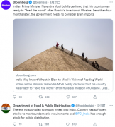 在今年2月俄乌冲突爆发之初,由于俄罗斯和乌克兰两大小麦主要出口国的小麦出口受限,印度总理莫迪曾在当时大胆宣称,印度已经准备好推动小麦对外出口,并喊出了“喂饱世界(f...