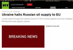 据“今日俄罗斯”(RT)刚刚消息,乌克兰停止向欧盟供应俄罗斯石油。 RT报道截图 RT援引俄新社消息称,通过德鲁日巴输油管道输送原油的南线部分已经停止运行。 此前报道介绍,德鲁...