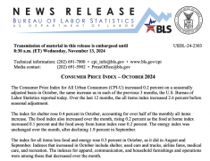 • 美国10月CPI平稳落地 鹰派官员发声强调信心 12月降息概率走高