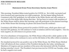 当地时间21日,白宫发表声明称,美国总统拜登新冠病毒检测结果呈阳性,症状轻微。 声明说,拜登已完全接种疫苗,并接种了两剂加强针。根据美国疾病控制与预防中心的指导方针,...
