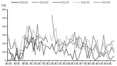 自11初以来玉米期货价格冲高回落,其中2401合约从此前的2500元/吨上涨至2570元/吨,而后下跌至当前的2520元/吨。东北产区受到降雪影响,玉米发运受到阻碍,进而导致玉米价格短期上涨...