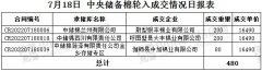 7月18日中央储备棉轮入上市数量 6000 吨,实际成交 480 吨,成交率 8% 。今日平均成交价为 16490 元/吨,较前一日 上涨433 元/吨。 其中内地库成交 480 吨,成交承储库3家。 今日成交情况如...
