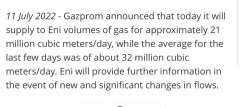 意大利能源巨头埃尼集团(Eni SpA)周一发表声明称,俄罗斯 天然气 工业股份公司(Gazprom)将进一步削减对意大利约三分之一的 天然气 供应。 埃尼集团周一称,俄气公司今天将向公司供应...
