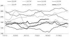 8月甲醇主力换月至2401合约,价格振荡上行。在宏观面和供需面双重作用下,2401合约最高涨至9月1日的2654元/吨。但由于价格向下传导受阻,基本面边际走弱,近几日甲醇价格回落100元...