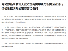 • 商务部新闻发言人就欧盟有关单独与相关企业进行价格承诺谈判的表态答记者问