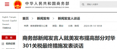 大家好,来看下热点消息。 商务部新闻发言人就美发布提高部分对华301关税最终措施发表谈话 据商务部网站消息,9月14日,商务部新闻发言人就美发布提高部分对华301关税最终措施发...