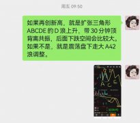 周五受外围股市影响,低开24点,结果一路向上飙涨,强势到收盘,确实够牛的。当时我就说了,可能会走扩D浪末浪上升。 结果还真的搞出了个扩张三角型D浪上升来,这个扩张三角型...