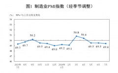 期货日报网讯(记者 杨美) 7月31日,国家统计局服务业调查中心和中国物流与采购联合会发布的中国采购经理指数显示,7月份,制造业采购经理指数为49.4%,比上月略降0.1个百分点,...
