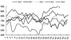 强预期、弱现实 短期来看,在旺季限气和进口不及预期等潜在利多因素影响下,甲醇2501合约表现出一定的抗跌性,预计价格波动区间在2400~2600元/吨。 图为甲醇开工率走势 甲醇港口连...