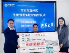 期货日报网讯(记者 饶红浩) 2024年广西河池宜州区生猪保险+期货项目于近日完成首单赔付,投保养殖户共获赔款21.47万元。12月26日,本次项目的现场赔付仪式举行。太平财险河池中心...