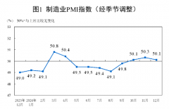 • 统计局:12月制造业PMI为50.1% 连续三个月位于扩张区间