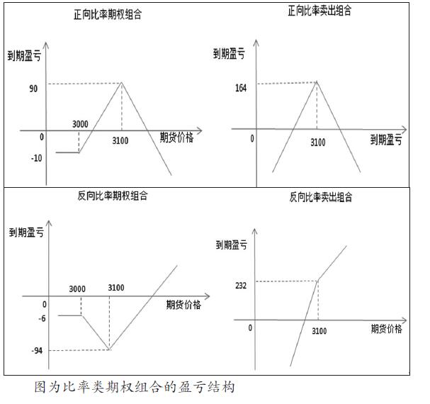 假设当豆粕期货为3000元/吨时,投资者分别构造正(反)向比率和比率卖出组合。