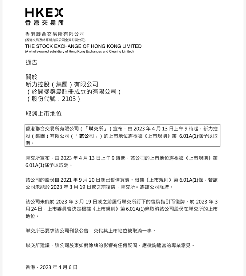 一场历时一年半的现金流“保卫战”之后,有的上市房企已“喘过气”,有的却站上了“退市”的悬崖边。 4月6日,港股新力控股集团(02103.HK)发布公告称,因公司未能于2023年3月19日前复牌,香港联合交易所有限公司宣布,由2023年4月13日上午9时起,新力控股集团的上市地位将根据《上市规则》第6.01A(1)条予以取消。 ![]() 目前,在港股停牌的内地房企共有17家。其中,于2021年9月20日暂停交易的新力控股集团,是其中最早停牌房企。而公司股价定格在0.5港元/股已长达1年半时间,市值也从上市时的139亿港元跌至20亿港元不到。 作为江西最大本土房企,新力控股集团成立9年时间就已跻身资本市场,第10年迈入千亿房企阵营,一度被称为“地产圈奇迹”。但这枚曾经冉冉升起的地产“新星”,犹如流星一般在资本市场划过,上市仅3年多时间便面临退市,即将成为首家被港交所强制退市的内地房企。 一场流动性危机引发退市风波 近半年时间以来,除了偶尔的清盘呈请、供应商讨债、项目停工维权,以及公司大规模裁员的消息外,身为曾经的房地产“黑马”,新力控股集团几乎快要淡出公众视野。 新力控股集团的退市风波源于2021年的一场流动性危机。 2021年9月20日,新力控股集团股价断崖式下跌,并以内幕消息为由宣布停牌,至今未能复牌。 直至十天后,一则姗姗来迟的公告才给出停牌理由:“由于本集团近期面临因宏观经济状况而导致的不曾预期的流动资金问题,本公司若干附属公司未能于相关到期日或之前就两项境内融资安排于2021年9月18日支付应付利息合共人民币约3874.2万元(逾期付款)。” 事实上,此时的新力已经显得“无力”。 2021年9月,公司披露的2021年中期报告称,截至2021年6月30日止6个月,新力控股集团及其附属公司录得收益人民币112.189亿元,同比增长约28.9%。 与此同时,公司总负债为918亿,总负债率近82%,其中流动负债有754.28亿元,一年内到期的短期债务约132.4亿元,现金及银行结余约为193.5亿元,短期债务占现金比达68.4%。 此后,新力控股再无披露公司业绩。 2022年9月,新力控股集团发布公告称,因公司财务报告单位人员短缺,集团的财务报告职能无法正常有效运作,截至公告日期该情形依旧持续。公司无法根据上市规则的规定刊发2021年年度业绩及2022年中期业绩连同相关的年报及中期报告。 2021年12月6日,新力控股集团曾作出风险提示,公司需要证明其已遵守上市规则第13.24条;同时公布所有重大资料,供股东及其他投资者评估公司的状况;根据上市规则第6.01A条,联交所可将已连续停牌18个月的证券除牌。 业内人士:退市定局或将致其破产 “新力的情况,目前确实不好过。公司老板失联多时,债务几乎是躺平了。”一名在港上市的房企财务高管向记者表示,对于房企而言,如果被摘牌,将是一个致命打击。 “发家快、陨落更快”,是业内对新力控股集团的评价。 公开资料显示,新力控股集团于2010年在江西南昌成立,并于2019年11月在香港上市,是中国内地成立时间最短的上市房地产公司。也就是在上市仅1年零10个月后,公司开始停牌。 新力控股集团招股书曾披露,公司实控人是江西神秘富豪张园林,其学历仅为中等职业技术学院毕业,44岁时创办新力控股集团。 2010年,房地产行业正处于快速发展期。作为地产界新星,新力控股集团成立的第一年就拿出七八个亿用于拿地,并迅速在南昌积累起大量土储。 在2017-2019这三年,张园林通过疯狂举债加杠杆,在全国各地拿了不少高价地,新力控股集团由此被业界称为“地王收割机”。 充沛的土储,助推公司实现销售额的高速增长。 根据财报显示,2019年,新力控股集团实现合约销售额914.23亿元,即将跨入千亿俱乐部。而在2016-2018年,其销售额分别为161.3亿、428.1亿和887.3亿元,复合年增长率高达136%。 在此背景下,从0走到近千亿,只用了9年时间的新力控股集团获得资本市场认可。上市首日,新力控股集团开盘价为3.98港元/股,市值达到139.41亿港元。 上市后,张园林更是借助丰富的融资渠道,开始加码全国性的规模扩张。除了“大本营”江西外,新力控股集团的业务还拓展至长三角、粤港澳大湾区、中西部核心城市等。 成也萧何,败也萧何。高杠杆、高周转、高负债这一地产行业的经典运营模式,帮助新力控股集团迅速走上千亿销售额规模,但当行业发展逻辑发生改变时,昔日的“三高”房企迎来残酷考验。 2021年12月20日,新力控股集团首次披露境内债逾期金额63.94亿元,并确认10月到期的一笔2.5亿美元的债务违约。 截至2022年11月30日,上海票交所披露,新力地产集团有限公司已经逾期的商票累计1700万元,此外还有1.12亿元的商票需兑付。 去年12月,新力控股集团更是被香港高等法院发布“清盘令”。2022年8月,公司因一只私募债券而接获债权人清盘呈请,此后该呈请聆讯多次延期,据新力控股集团11月公告,法院对该清盘呈请聆讯延期至12月7日。 ![]() “一旦退市成为定局,房企大部分的融资渠道会被掐断,基本丧失债务重组的可能性,大概率会面临破产或被其他公司分割收购。”上述房企高管表示,当初拿地价格过高,再加上项目还要打折才能顺利出手,从整体上算账,新力的债务规模远大于净资产,重生之路将异常艰难。 (文章来源:上海证券报) (责任编辑:admin) |