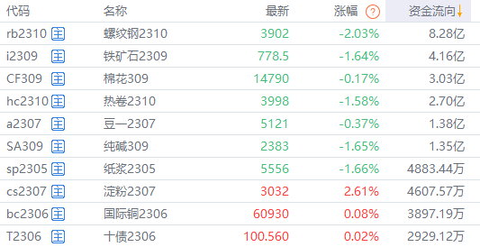 资金流向![]() ![]() 宏观要闻界面新闻:据央视财经,在4月10日上午举行的沪深交易所主板注册制首批企业上市仪式上,证监会主席易会满表示,注册制改革带来的变化是全方位的根本性的,以信息披露为核心的发行上市制度,经受住了市场检验、交易退市等关键制度创新成效显著。 财联社:本周三(4月12日)即将出炉的美国3月CPI数据,无疑将再度变得格外关键。如果最新数据显示,即使在美联储过去一年积极加息之后消费者物价仍强劲上涨,市场上5月加息的观点可能会得到进一步支持。而若反之——CPI数据出现超预期下降,则年末降息的呼声料将再度甚嚣尘上! 澎湃新闻:在不少业内人士看来,碳酸锂价格的快速下降,带来锂电池储能的电池成本随之走低,将极大地刺激下游的装机需求,储能产业迎来了新的利好。 品种资讯钢材:据钢银电商数据显示,截至4月10日,全国钢市总库存量为1116.84万吨,较上周环比减少12.82万吨(-1.13%),包含39个城市,共计146个仓库。(新华财经) 中信建投最新研报表示,我们预计2023Q2钢厂盈利状况或有转机,一是原料强预期正在扭转,成本下移提升钢厂盈利能力。二是经济复苏面正在扩大,内生动能逐步增强。三是低基数效应下,利润同比读数将有明显回升。总体而言,当前行业处于盈利和估值底部,向上修复空间较大。(e公司) 煤炭:近日从山西省能源局获悉,今年一季度,山西省煤炭产量达到3.35亿吨,同比增长8.9%,创单季度煤炭生产新高,产量位居全国第一。(人民日报) 黑龙江今年一季度全省调度煤炭产量1559万吨,创十年来同期最好水平,实现首季开门红。全省煤矿已连续17个月未发生亡人事故,连续66个月未发生重大及以上事故。(上海证券报) 工业硅:随着硅价进一步下跌,硅厂成本倒挂情况严重,这在一定程度上打击了企业的生产积极性,多数硅企均存在停产情况。(期货日报) 黄金:近期,黄金价格持续攀升,现货黄金价格一度创历史新高。4月9日,记者走访调研北京地区黄金消费市场发现,各大品牌黄金珠宝标价均出现不同程度上涨。其中,周大福、老庙黄金等品牌黄金珠宝商首饰金攀升至580元/克,且优惠力度较小。据珠宝商门店工作人员介绍,最近投资类消费占比较少。 (中证报) PVC:据隆众资讯,截至4月9日,国内PVC社会库存52.21万吨,环比增加0.29%,同比增加41.76%。(新华财经) 棕榈油:据船运调查机构ITS数据显示,马来西亚4月1-5日棕榈油出口量为209845吨,上月同期为171585吨,环比增加22.30%;4月1-10日棕榈油出口量为303285吨,上月同期为501514吨,环比减少39.53%。(新华财经) 棉花:据中国棉花信息网,4月10日中国棉花价格指数(CC Index)为15514元/吨,较上个交易日增加91元/吨。(新华财经) 截至4月7日当周,全国棉花商业总库存384.54万吨,环比减少10.65万吨(降幅2.65%)。其中,新疆地区商品棉314.86万吨,周环减少12.93万吨(降幅3.94%)。(新华财经) 生猪:据国家发改委数据,截至4月5日,全国生猪出场价格为14.78元/公斤,比3月29日下跌2.31%;猪粮比价为5.17,比3月29日下跌0.96%。(发改委网站) 鸡蛋:当前,日本暴发了有史以来最严重的禽流感疫情,大量染疫禽类被扑杀,现已没有足够土地掩埋死禽。国内市场方面,据媒体报道,近3个月,鸡苗价格上涨了300%。作为白羽肉鸡产业链上的关键一环,鸡苗价格牵动着整个肉鸡行业。(财联社) 橡胶:据大阪交易所(OSE)官网4月10日数据,截至2023年3月31日,交易所指定仓库的橡胶(RSS)库存为10700吨,较截至03月20日的9532吨增加1168吨。(新华财经) (文章来源:东方财富研究中心) (责任编辑:admin) |
