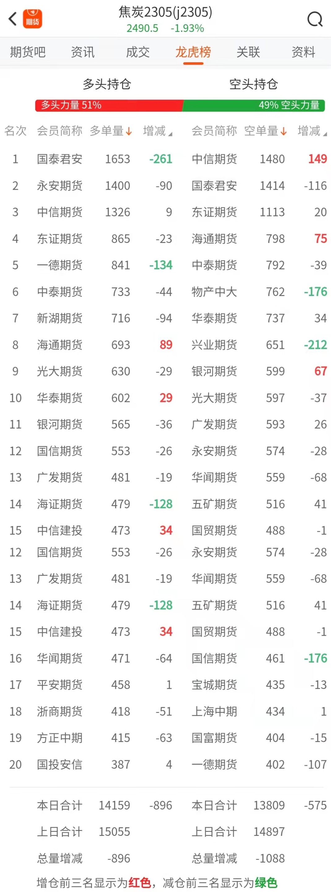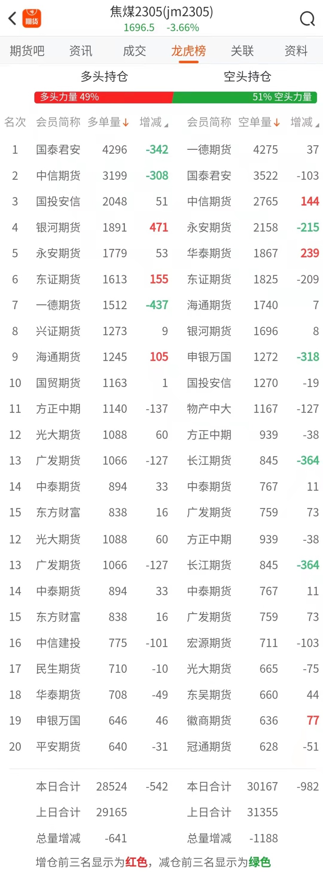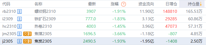 黑色持仓龙虎榜:焦煤跌3.66% 多头第一名增持超1.8万手螺纹空单