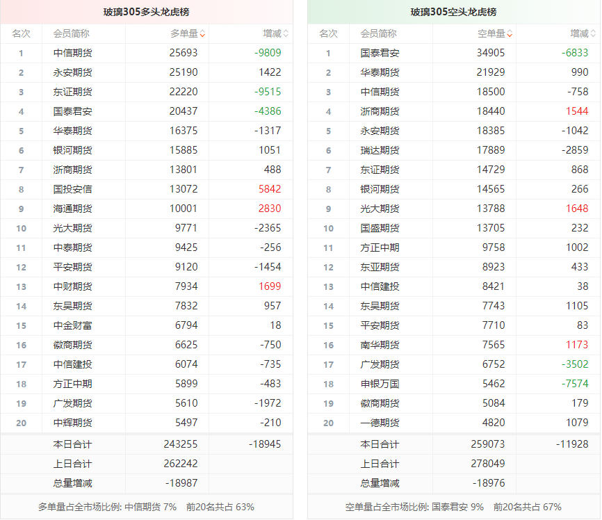 【玻璃龙虎榜】临近交割期限多空双方均以退场态势为主