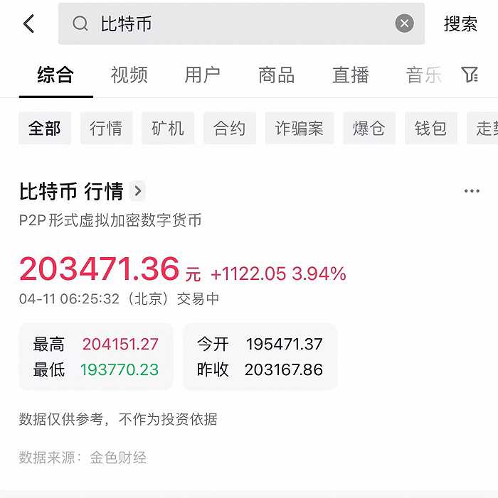 4月11日,行情数据显示,全球最大加密货币比特币价格突破29000美元关口,截止发稿前报价来到29690美元,24小时涨幅4.55%,无限逼近30000美元关口,创2022年6月以来的最高点。 第二大加密货币以太坊涨幅稍小,但也企稳在1900美元关口,24小时涨幅2%左右。受益于两大龙头加密货币的市场表现,加密货币总市值水涨船高,coingecko数据显示,目前加密货币总市值已突破1.27万亿美元关口,24小时涨幅2.7%。 进入4月,加密货币比特币保持年初以来的强劲走势,在3月末尾比特币曾短暂突破29000美元关口,随后保持在28000美元关口震荡。Wind数据显示,2023年迄今全球大类资产表现中,比特币年内涨幅已经达到71.47%,排名全球第一,与2022年排名全球倒数第一形成了鲜明对比。 自美联储2022年加快加息步伐后,以比特币为首的加密货币陷入颓势,一路从69000美元的历史高位跌入15000美元的低点,目前比特币的价格从谷底反弹了近一倍,但和历史高位相比差距明显。 由于大部分时间受美联储货币政策的影响,比特币的价格经常在美联储FOMC会议举办前后出现异动,但近日加密货币的上升行情并未找到明显的相关性。Coindesk援引外汇做市商Oanda的高级市场分析师爱德华·莫亚的观点称:“这种飙升没有明显的催化剂。”目前在比特币的主力交易市场之一,欧美地区还未结束复活节假期。 在中国大陆地区,据社区反映,国内最大短视频社交平台之一抖音APP的搜索引擎可以为比特币提供行情报价,界面新闻确认,在其APP内搜索“比特币”关键词,首条已出现当日、最高、最低、今开、昨收价格,比特币的标签为P2P形式虚拟加密数字货币,数据来源为金色财经。同时,输入加密货币币种名称+行情也可以获得行情数据。 ![]() 截自抖音app 值得注意的是,2021年9月中国人民银行等十部门联合发布《关于进一步防范和处置虚拟货币交易炒作风险的通知》,其中明确提及严格禁止为虚拟货币交易提供信息中介和定价服务。 截至发稿前,抖音方面对此事暂无回应。 (文章来源:界面新闻) (责任编辑:admin) |