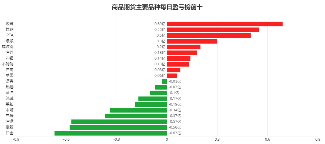 品种盈亏榜:今日商品期货中玻璃盈利第一,为0.69亿元。 沪金亏损第一,为0.67亿元。 ![]() 就玻璃而言,今日席位盈利前三为国泰君安、瑞达期货、申银万国,分别盈利7923.66万元、3259.59万元、3249.90万元。 今日席位亏损前三为中信期货、华泰期货、方正中期,分别亏损2336.30万元、2019.84万元、1938.41万元。 ![]() 就沪金而言,今日席位盈利前三为齐盛期货、中辉期货、金瑞期货,分别盈利3269.39万元、2077.34万元、383.08万元。 今日席位亏损前三为海通期货、中财期货、永安期货,分别亏损7719.93万元、2345.59万元、1403.73万元。 ![]() 席位盈亏榜:今日机构席位中申银万国盈利第一,为0.87亿元。 海通期货亏损第一,为1.24亿元。 ![]() 就申银万国而言,今日品种盈利前三为PTA、玻璃、螺纹钢,分别盈利5021.80万元、3249.90万元、1259.11万元。 今日品种亏损前三为纯碱、沪铜、纸浆,分别亏损1533.32万元、841.46万元、244.37万元。 ![]() 就海通期货而言,今日品种盈利前三为螺纹钢、纯碱、沪锌,分别盈利804.33万元、744.95万元、334.28万元。 今日品种亏损前三为沪金、沪铜、白糖,分别亏损7719.93万元、1528.15万元、1334.35万元。 ![]() (文章来源:东方财富研究中心) (责任编辑:admin) |