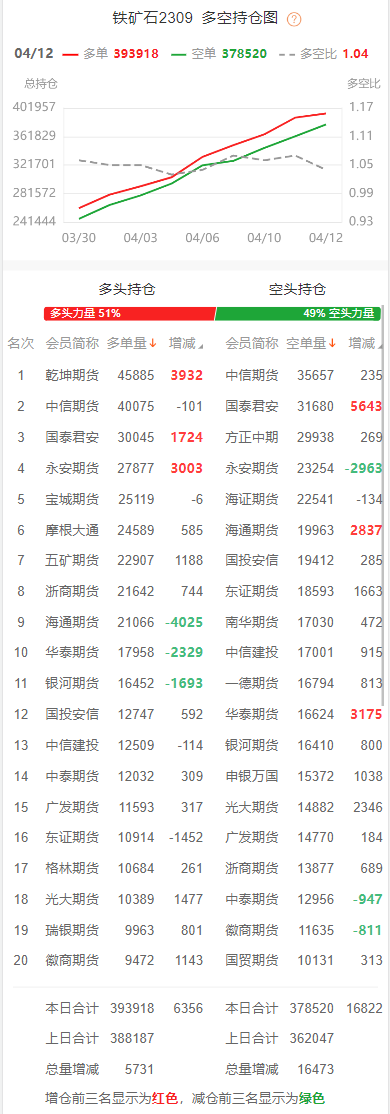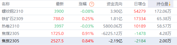 黑色持仓龙虎榜:铁矿石涨0.25% 空头第一名增持近8千手螺纹空单