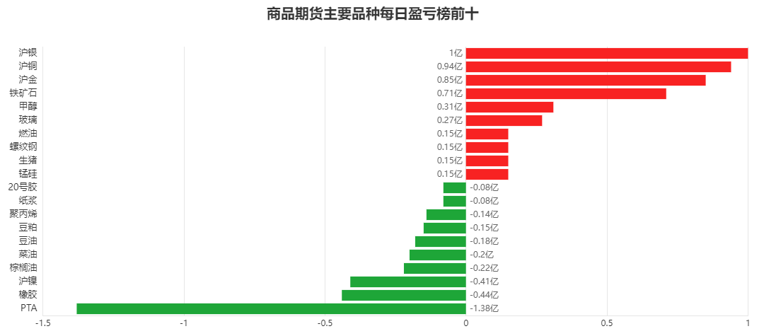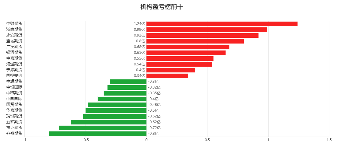 品种盈亏榜:今日商品期货中沪银盈利第一,为1.00亿元。 PTA亏损第一,为1.38亿元。 ![]() 就沪银而言,今日席位盈利前三为华泰期货、国投安信、永安期货,分别盈利4299.08万元、2877.65万元、2627.78万元。 今日席位亏损前三为国泰君安、金瑞期货、金源期货,分别亏损4255.25万元、1348.52万元、1308.69万元。 ![]() 就PTA而言,今日席位盈利前三为宝城期货、国贸期货、国富期货,分别盈利2582.27万元、2542.43万元、2278.19万元。 今日席位亏损前三为东证期货、中信期货、中粮期货,分别亏损7083.38万元、5283.60万元、4303.24万元。 ![]() 席位盈亏榜:今日机构席位中中财期货盈利第一,为1.24亿元。 齐盛期货亏损第一,为0.80亿元。 ![]() 就中财期货而言,今日品种盈利前三为沪金、锰硅、乙二醇,分别盈利10959.31万元、350.99万元、303.14万元。 今日品种亏损前三为橡胶、鸡蛋、菜油,分别亏损119.38万元、104.03万元、50.15万元。 ![]() 就齐盛期货而言,今日品种盈利前三为鸡蛋、燃油、棕榈油,分别盈利14.72万元、4.08万元、3.38万元。 今日品种亏损前三为沪金、豆一、豆油,分别亏损7659.82万元、289.21万元、11.96万元。 ![]() 注:可通过点击东方财富期货PC端左侧“龙虎榜”栏目及东方财富期货APP行情页面“龙虎榜”栏目查看各类机构持仓及盈亏榜单信息。 ![]() ![]() (文章来源:东方财富研究中心) (责任编辑:admin) |