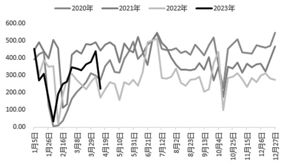 图为30个大中城市商品房成交面积(单位:万平方米) 一季度之后,银行间资金面转松,使得投资者对于流动性预期较为乐观,银行间质押式回购成交量增加至8万亿元以上。从经济基本面看,二季度内需延续修复态势已成共识,债市更关心经济复苏斜率。4月9日当周,30个大中城市地产销售数据再度回落,令经济修复放缓预期升温,亦对债市形成利好。4月11日,国家统计局公布3月通胀数据,其中PPI同比下降2.5%(预期下降2.5%、前值下降1.4%),CPI同比上涨0.7%(预期上涨1.0%,前值上涨1.0%),引发市场对于通缩的讨论,国债期货“闻声”走高。数据结构方面,3月PPI同比回落主要受基数较高和全球经济下行周期背景下大宗商品价格下跌的影响,CPI同比回落则主要受食品价格走低的拖累,而剔除食品和能源价格的核心CPI同比温和上涨0.7%。在CPI和PPI双双回落的情况下,流动性有望维持宽松状态,叠加此前部分中小行调降利率,降息预期再度升温。